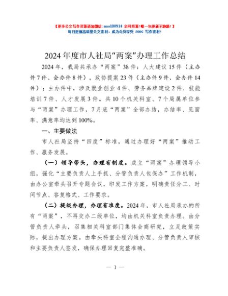 / 2024年度市人社局“两案”办理工作总结