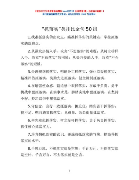 / “抓落实”类排比金句50组