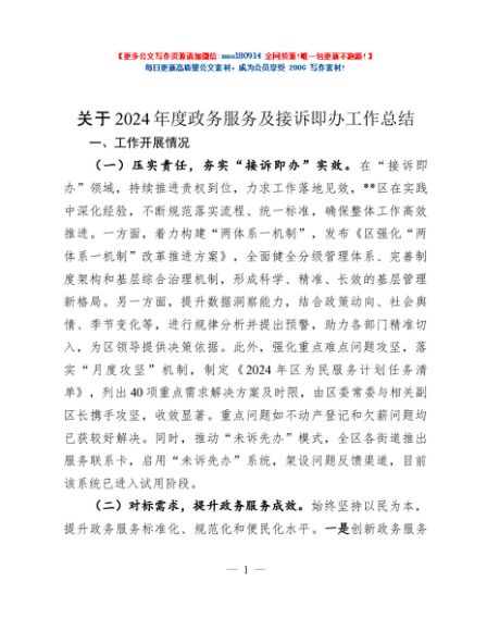 / 关于2024年度政务服务及接诉即办工作总结