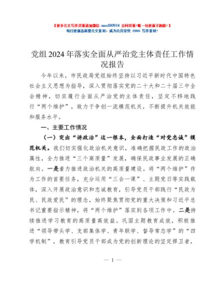 / 党组2024年落实全面从严治党主体责任工作情况报告