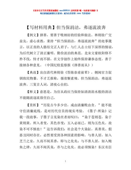 【写材料用典】但当保涓洁,弗逐流波奔