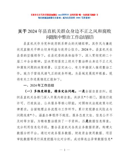 / 关于2024年县直机关群众身边不正之风和腐败问题集中整治工作总结报告