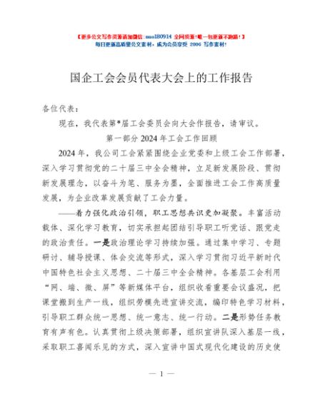 / 国企工会会员代表大会上的工作报告