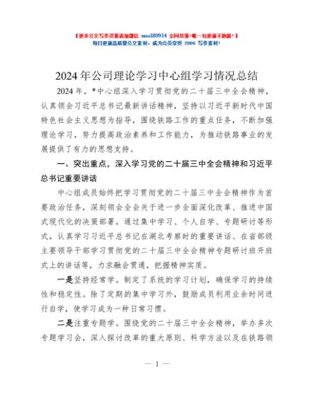 / 2024年公司理论学习中心组学习情况总结