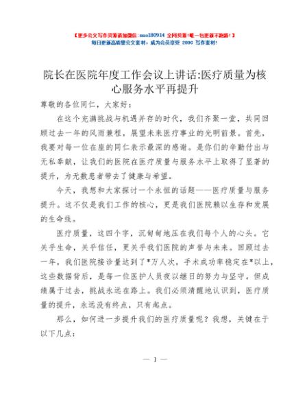 / 院长在医院年度工作会议上讲话:医疗质量为核心 服务水平再提升