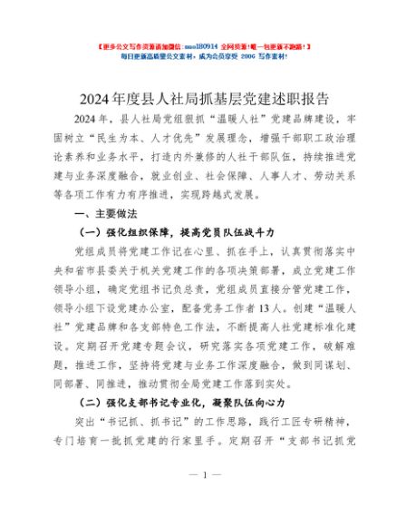 / 2024年度县人社局抓基层党建述职报告