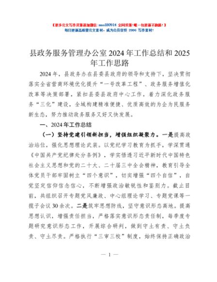 / 县政务服务管理办公室2024年工作总结和2025年工作思路