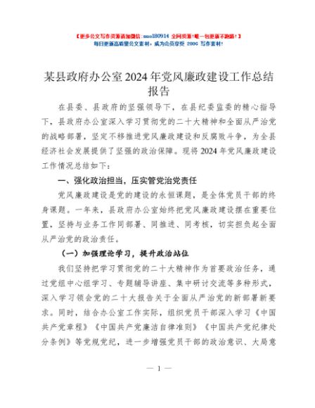 / 某县政府办公室2024年党风廉政建设工作总结报告