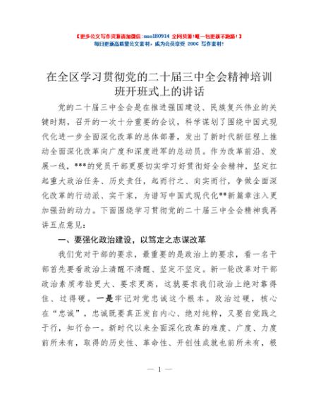/ 在全区学习贯彻党的二十届三中全会精神培训班开班式上的讲话