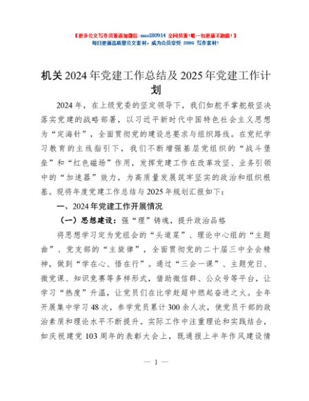 / 机关2024年党建工作总结及2025年党建工作计划