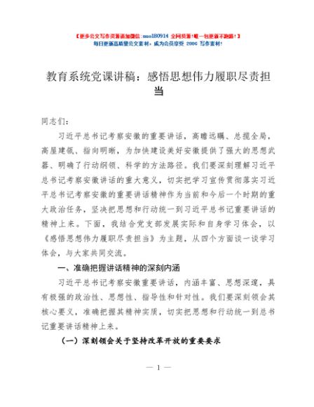 / 教育系统党课讲稿:感悟思想伟力 履职尽责担当
