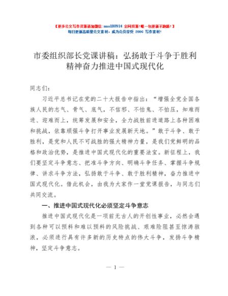 / 市委组织部长党课讲稿:弘扬敢于斗争于胜利精神 奋力推进中国式现代化