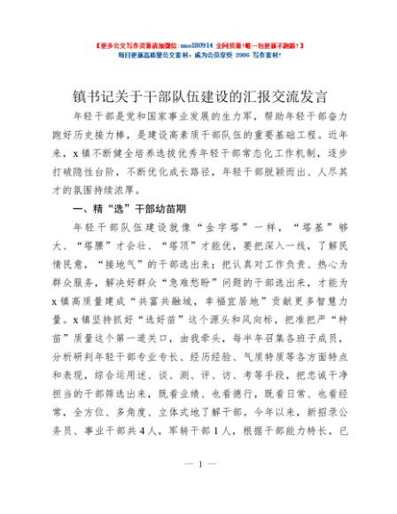镇书记关于干部队伍建设的汇报交流发言