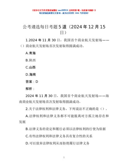 / 公考遴选每日考题5道(2024年12月15日)
