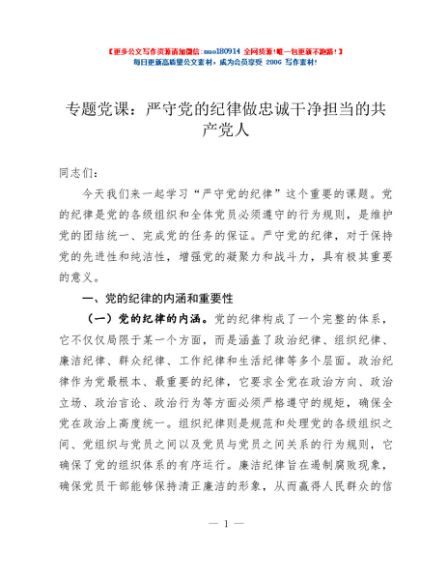 / 专题党课:严守党的纪律 做忠诚干净担当的共产党人