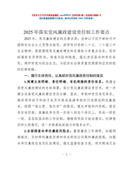 / 2025年落实党风廉政建设责任制工作要点
