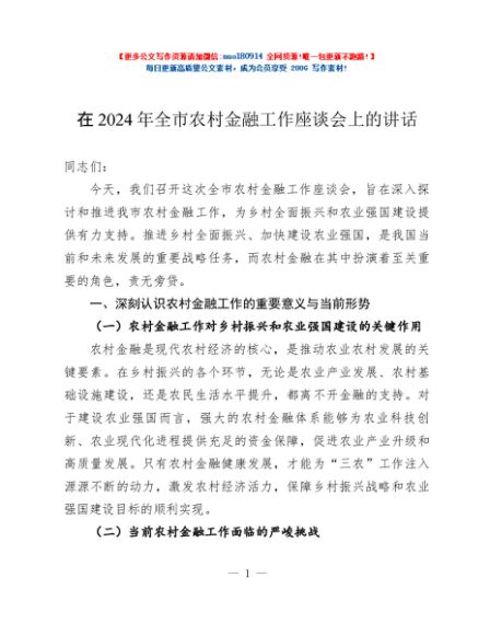 / 在2024年全市农村金融工作座谈会上的讲话