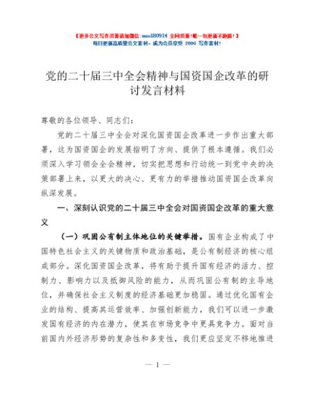 / 党的二十届三中全会精神与国资国企改革的研讨发言材料