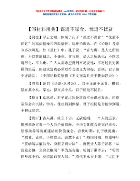 / 【写材料用典】谋道不谋食,忧道不忧贫