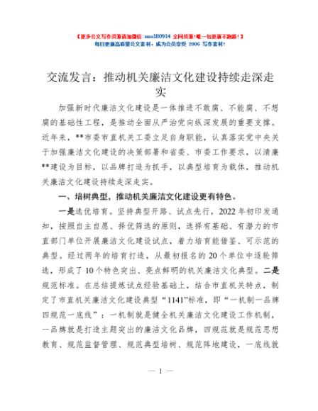 / 交流发言:推动机关廉洁文化建设持续走深走实