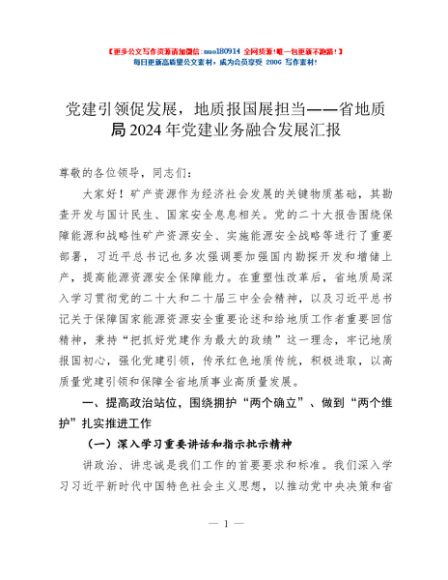 / 党建引领促发展,地质报国展担当——省地质局2024年党建业务融合发展汇报
