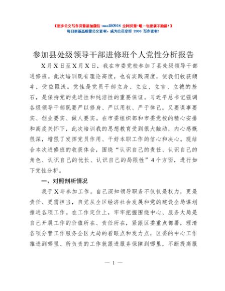 / 参加县处级领导干部进修班个人党性分析报告