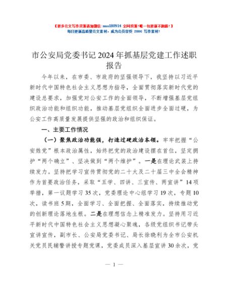 / 市公安局党委书记2024年抓基层党建工作述职报告
