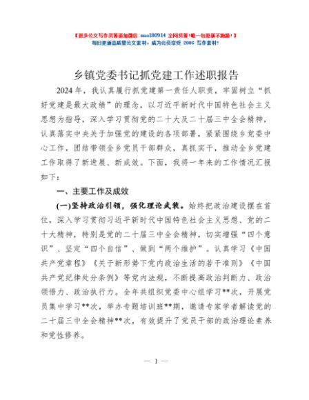 / 乡镇党委书记抓党建工作述职报告