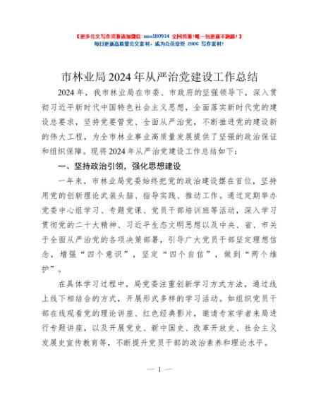/ 市林业局2024年从严治党建设工作总结