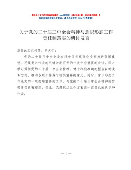 / 关于党的二十届三中全会精神与意识形态工作责任制落实的研讨发言