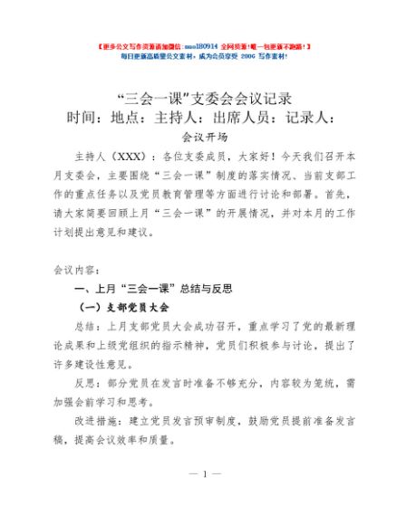 “三会一课”支委会会议记录