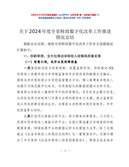 / 关于2024年度全省财政数字化改革工作推进情况总结