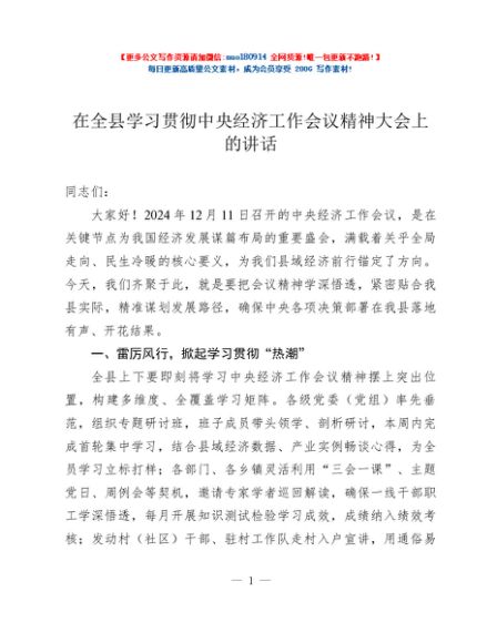 / 在全县学习贯彻中央经济工作会议精神大会上的讲话