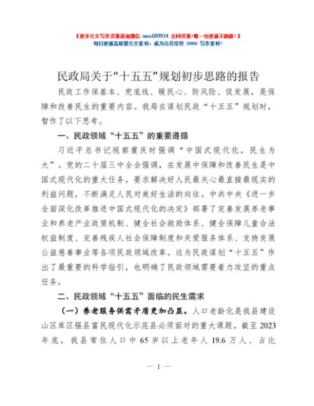 民政局关于 “十五五”规划初步思路的报告