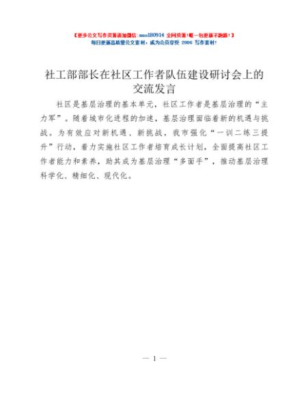 / 社工部部长在社区工作者队伍建设研讨会上的交流发言