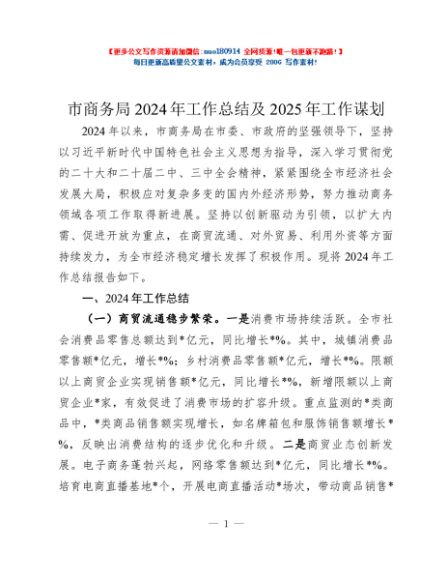/ 市商务局2024年工作总结及2025年工作谋划