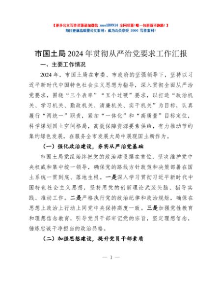 / 市国土局2024年贯彻从严治党要求工作汇报