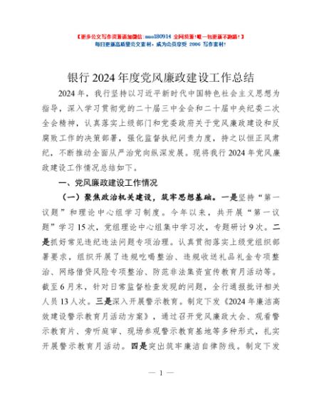 / 银行2024年度党风廉政建设工作总结