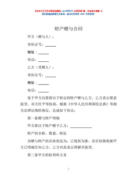 / 财产赠与合同