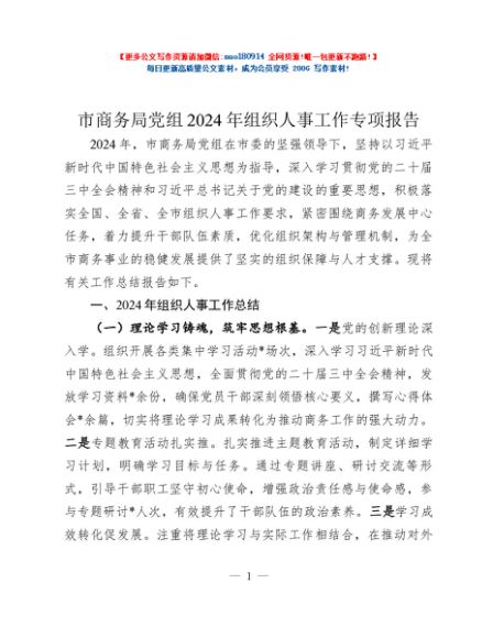 / 市商务局党组2024年组织人事工作专项报告