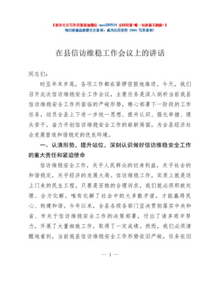/ 在县信访维稳工作会议上的讲话