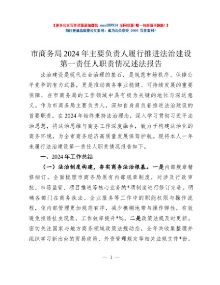 / 市商务局2024年主要负责人履行推进法治建设第一责任人职责情况述法报告