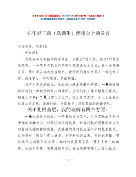 / 在年轻干部(选调生)座谈会上的发言
