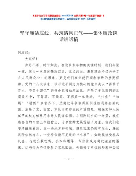/ 坚守廉洁底线,共筑清风正气——集体廉政谈话讲话稿