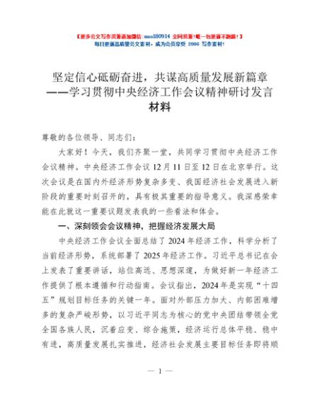 / 坚定信心砥砺奋进,共谋高质量发展新篇章——学习贯彻中央经济工作会议精神研讨发言材料
