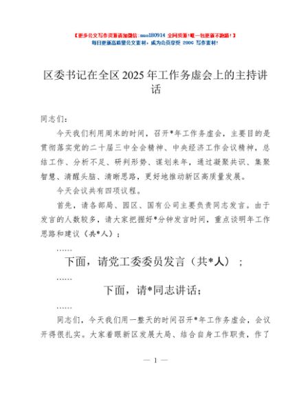 / 区委书记在全区2025年工作务虚会上的主持讲话