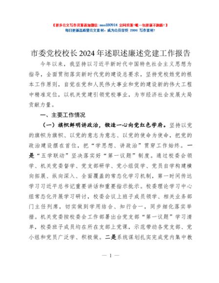 / 市委党校校长2024年述职述廉述党建工作报告