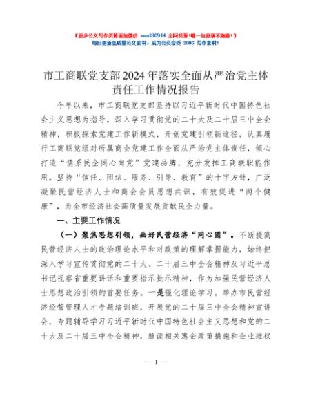 / 市工商联党支部2024年落实全面从严治党主体责任工作情况报告