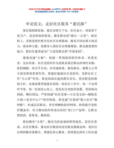 / 申论范文:走好社区服务“惠民路”