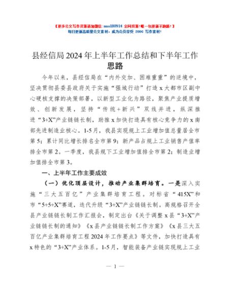 / 县经信局2024年上半年工作总结和下半年工作思路